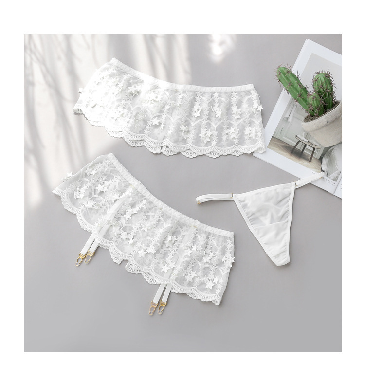 Beautifully Embroidered Star Tube Top Mesh One-shoulder Three-piece Sexy Lingerie