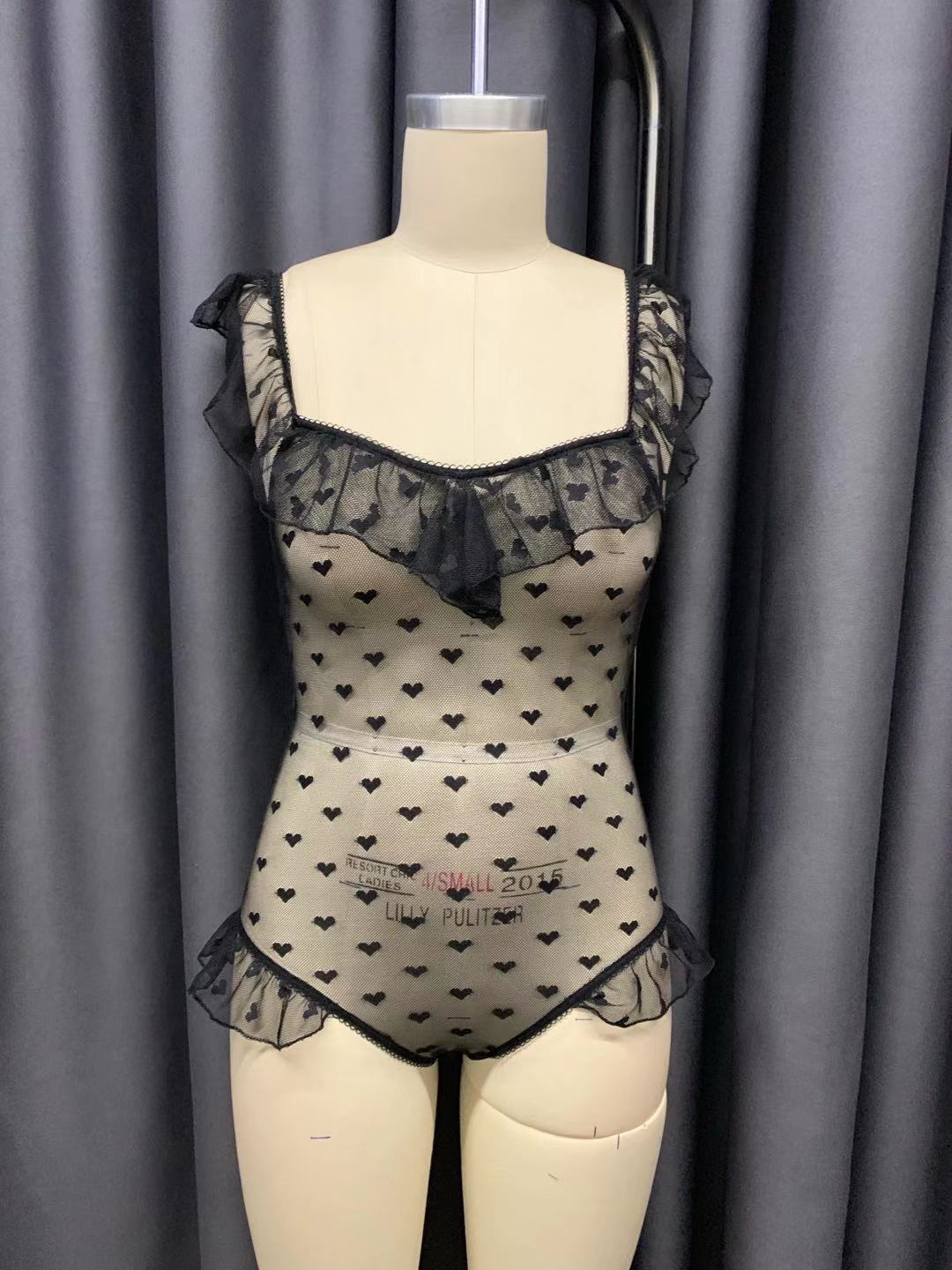 European And American Erotic Underwear Love Mesh See-Through Bodysuit