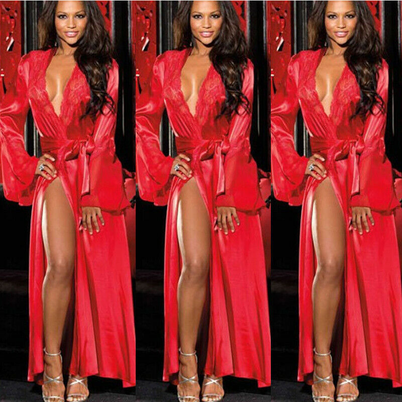 Women Sexy Lingerie Bathrobe Glossy Big Yards Dress